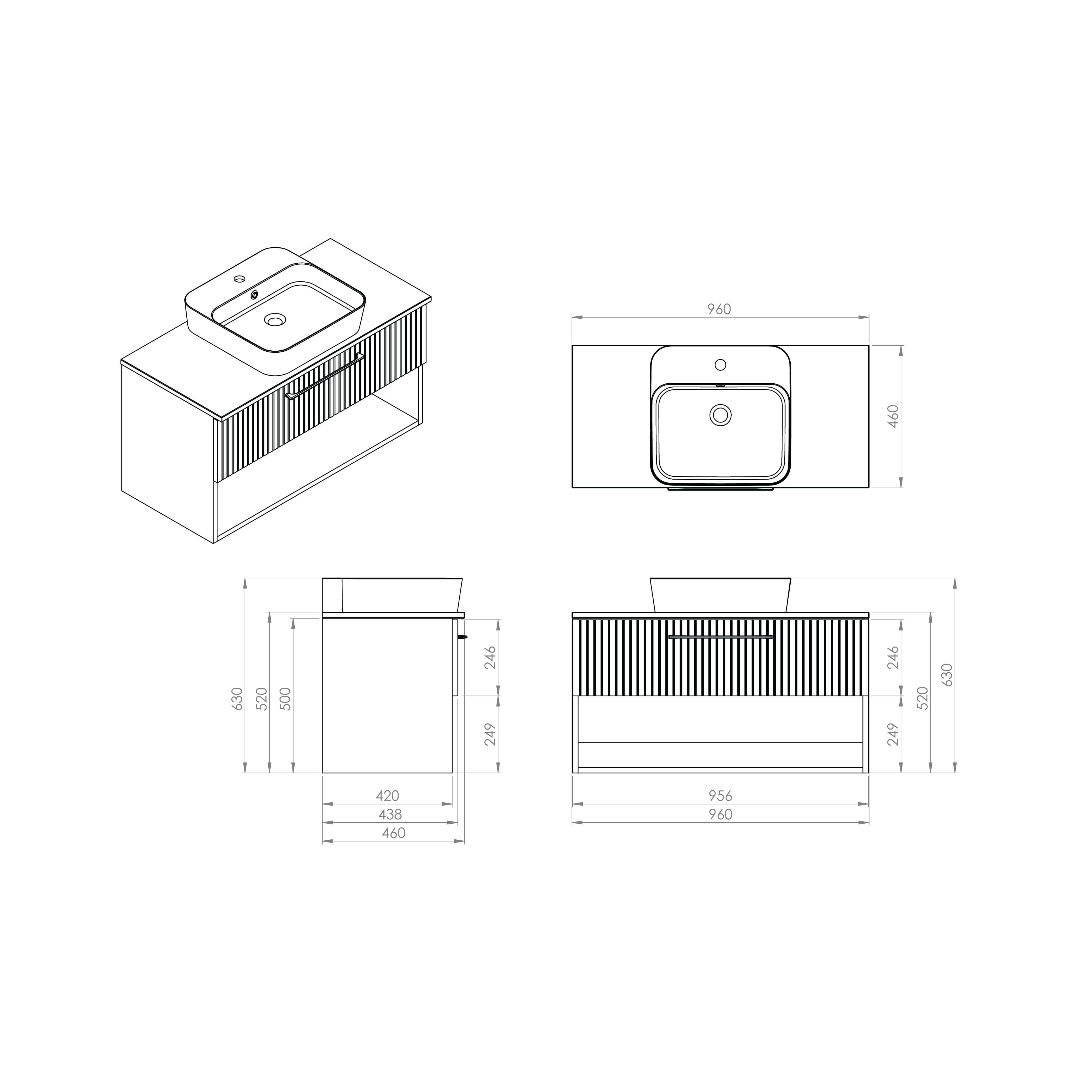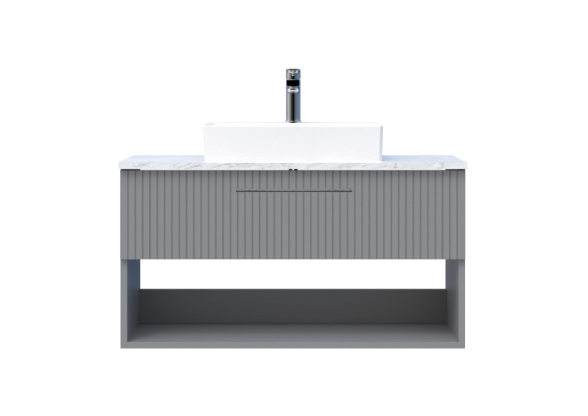 E10 Washbasin Unit 100cm 1 With Drawer Open Shelf & Granite Counter Anthracite