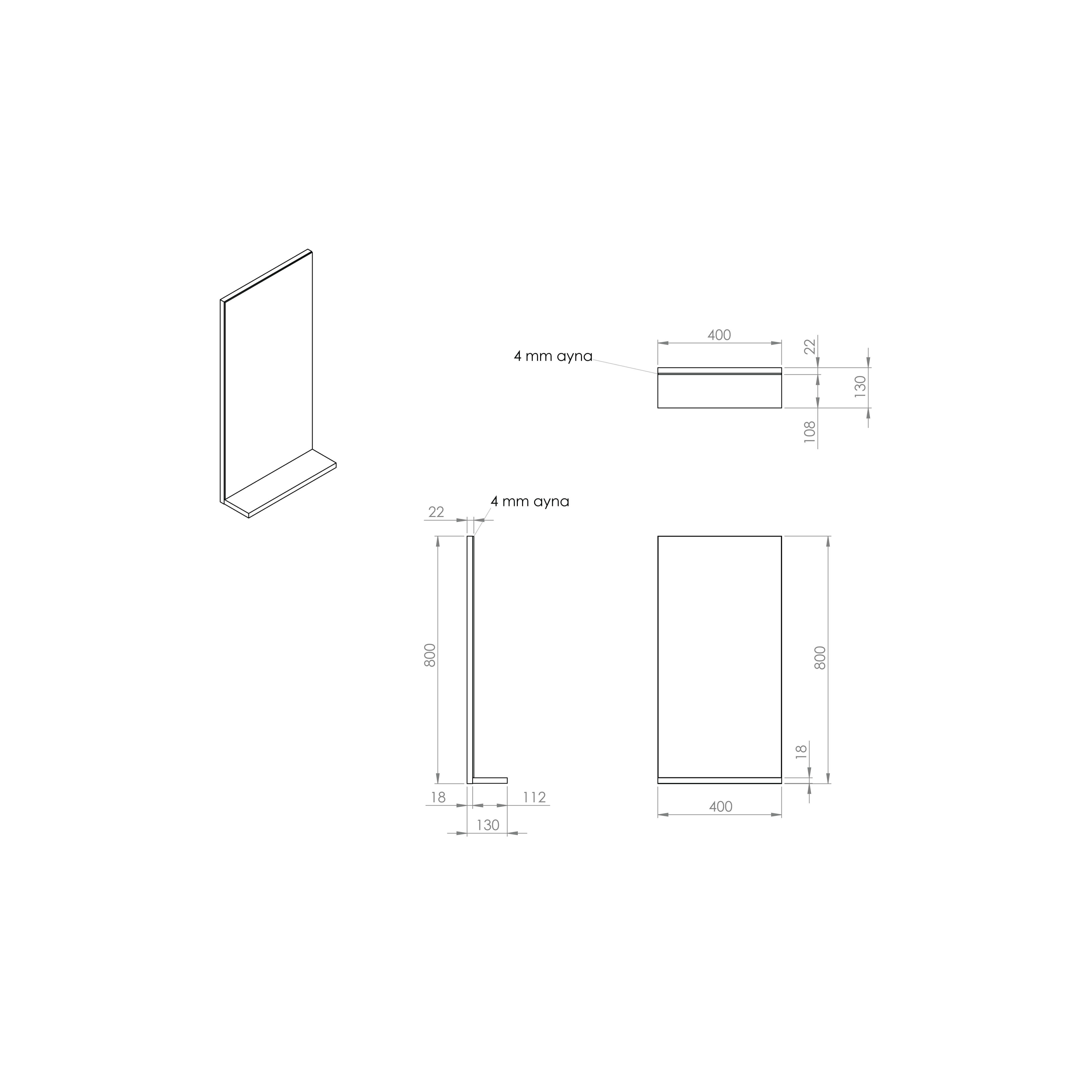 E10 Mirror with Shelf 40cm Anthracite