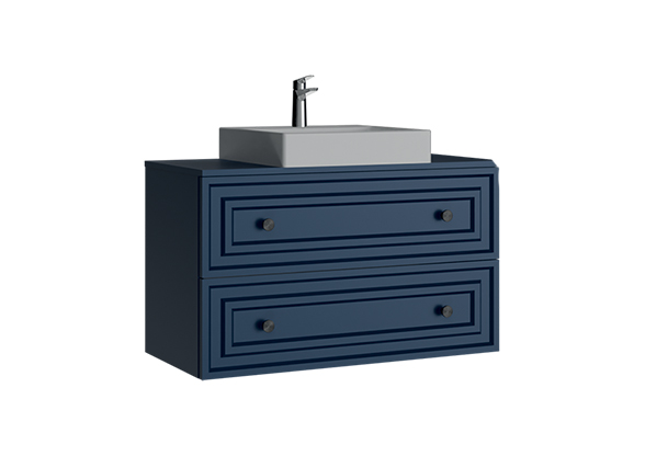 Perge Çekmeceli Lavabo Dolabı 100cm Mat Safir Mavi