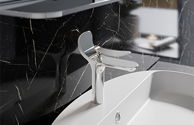 Elin akışkan doğal hareketleri ile uyumlu Foglia armatürler, bir banyoda hissedilmesi gereken huzuru ve konforu yansıtıyor.