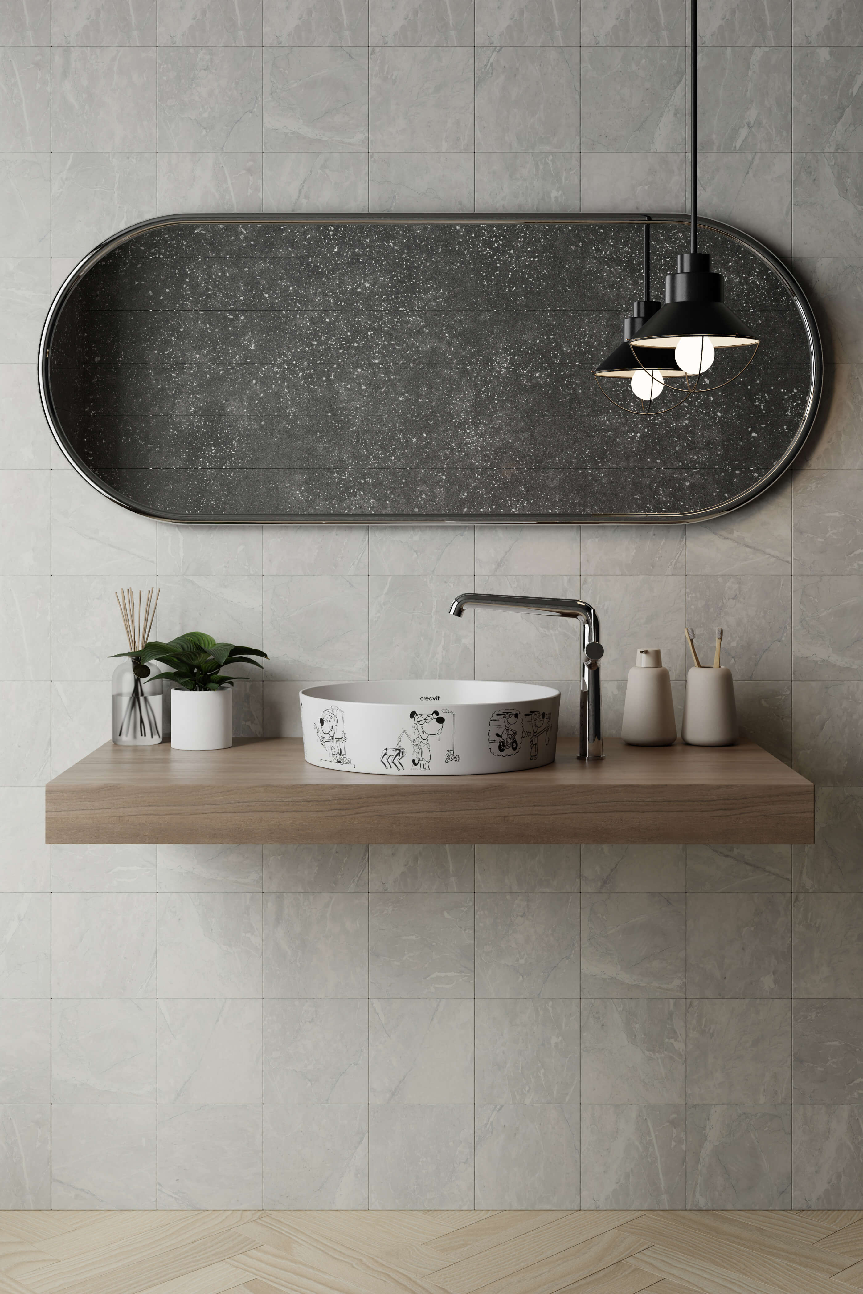 Loop Yuvarlak Çanak Lavabo Ø40 cm Karikatür Desen Uygulamalı